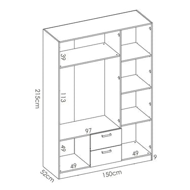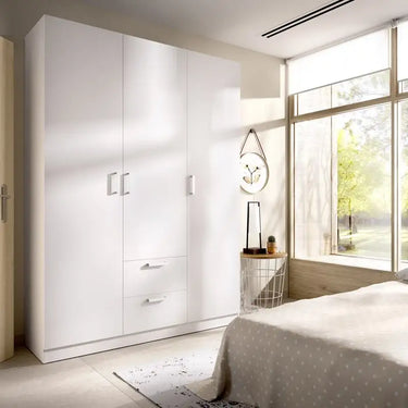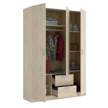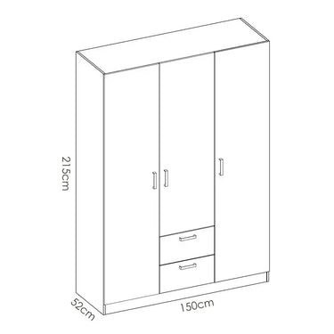 El armario PERUSA 3P2C es una opción amplia y funcional para organizar tu ropa con estilo. Con una altura de 215 cm, dispone de 3 puertas y una cajonera con 2 cajones, ideal para mantener ordenadas tanto las prendas colgadas como la ropa más pequeña. Su diseño moderno encaja a la perfección en dormitorios juveniles o espacios que requieren máxima capacidad de almacenaje.