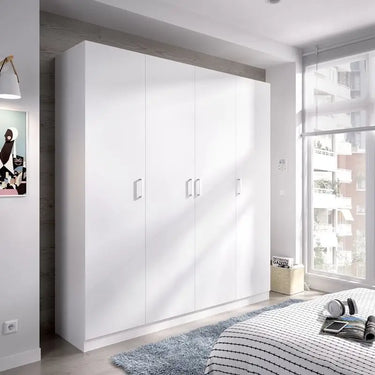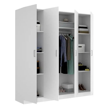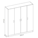 El armario de 4 puertas de la colección PERUSA ofrece una gran capacidad de almacenaje en un diseño funcional y actual. Con una altura de 215 cm, permite organizar todo tipo de prendas de forma eficiente, desde ropa colgada hasta ropa doblada o accesorios. Ideal para quienes necesitan espacio sin renunciar al estilo.