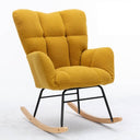 - Butaca mecedora tapizada en tela tipo Teddy con capitoné en respaldo y cojín asiento