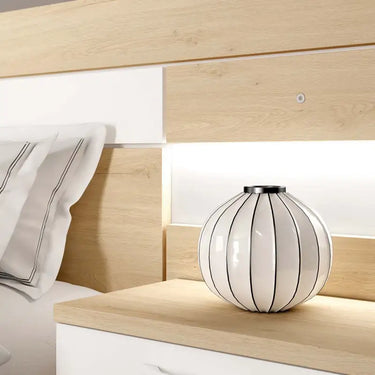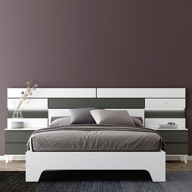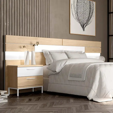 El cabecero LUCCA mod. 10 LED incluye dos respaldos laterales de gran formato y se convierte en la pieza central del dormitorio. Destaca por su iluminación LED integrada, con doble pulsador conmutado, y se puede configurar en distintos colores y medidas.