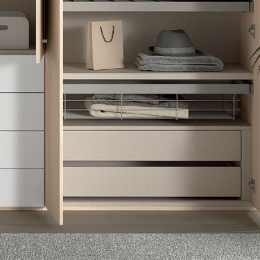 Optimiza el interior de tu armario con la cajonera de 2 cajones de la colección SIENA, ideal para armarios de fondo 50/55 cm. Fabricada en tablero color textil y equipada con guías telescópicas, es perfecta para organizar camisas, camisetas y otros básicos del día a día. Una solución práctica para mantener el orden con estilo y funcionalidad.