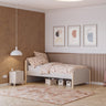La cama nido ALONE combina funcionalidad y diseño natural en una estructura pensada para dormitorios infantiles o juveniles. Fabricada en material laminado de primera calidad y madera de chopo natural, presenta un detalle cálido en los extremos que refuerza su estética acogedora. Apta para colchón de 90x190 cm, incluye somier de láminas en la cama superior.