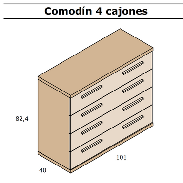 Hogar Products Cómoda 4 cajones LUCCA con Tirador