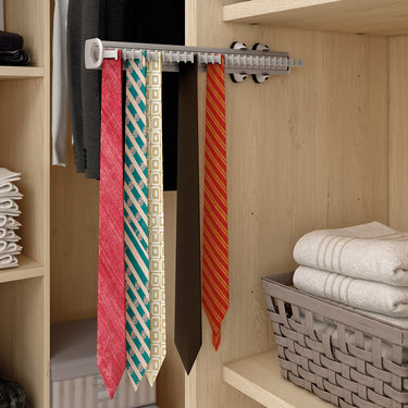 Organiza tu armario con esta barra extraíble para corbatas y cinturones, un complemento práctico para mantener todo en su sitio y ganar espacio. Funcional y cómodo, hace que vestirte sea más rápido y ordenado.