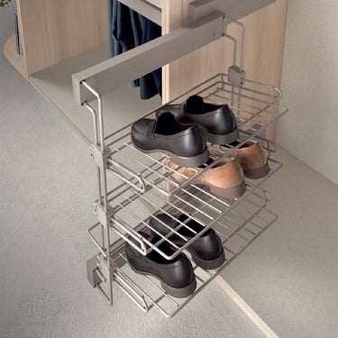 Optimiza el espacio de tu armario con el zapatero lateral de la colección SIENA, diseñado para armarios de fondo 50/55 cm. Su estructura metálica en color piedra y guías telescópicas permiten un acceso cómodo y una organización eficiente. Ideal para tener todos tus zapatos ordenados y siempre a mano, con un diseño funcional y discreto que se adapta a cualquier interior.
