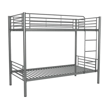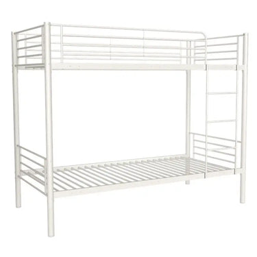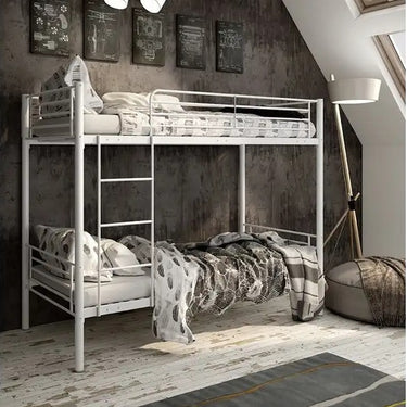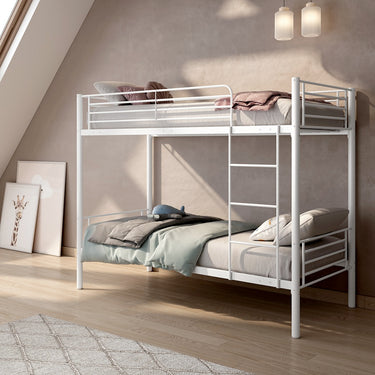 La litera LEURET de 90x190 cm es perfecta para ahorrar espacio y optimizar habitaciones pequeñas. Ideal como cama de crecimiento para niños o para recibir invitados con comodidad. Su estructura en tubo metálico en tonos gris o blanco asegura resistencia y estabilidad. Incluye escalera y barandilla para mayor seguridad. ¡Disfruta de dos camas en una!