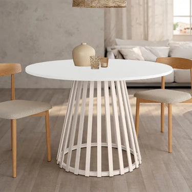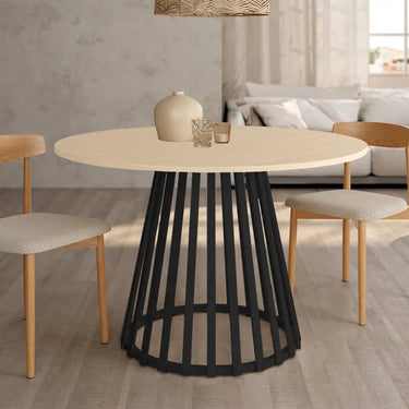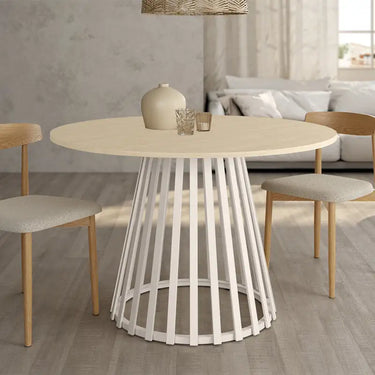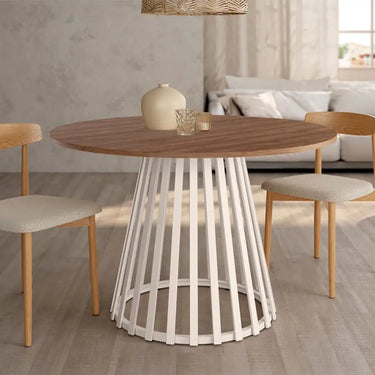 La mesa de comedor DELTA combina elegancia, fluidez y diseño moderno en una pieza única. Su sobre redondo facilita una distribución natural del espacio, mientras que su pata central le aporta carácter y distinción. Ideal para salones que buscan destacar sin perder funcionalidad.