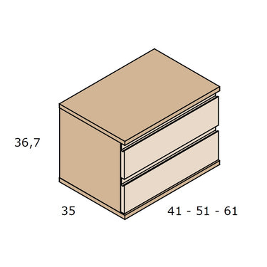 Mesita de noche LUCCA con 2 cajones y tirador insertado “J”