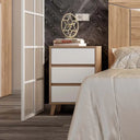 Mesita de noche LUCCA con tres cajones y tirador “Uñero”