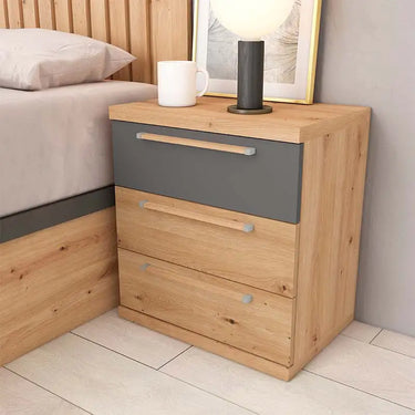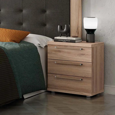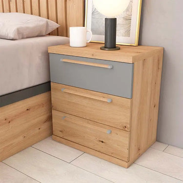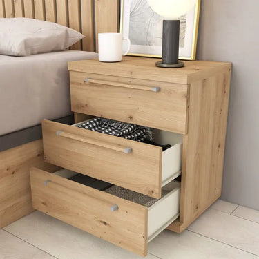 La mesita de noche Génova con tres cajones es perfecta para añadir diseño y funcionalidad a tu dormitorio. Personalízala en colores, tiradores y acabados, y crea la mesita que mejor se adapte a tu estilo.