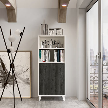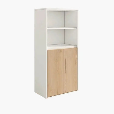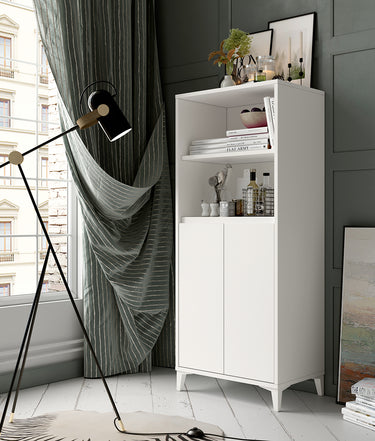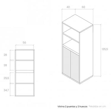 Módulo de salón con dos puertas y dos cajones, que incluye además dos estantes fijos (superior e inferior). De diseño actual, ofrece una gran capacidad de almacenamiento.