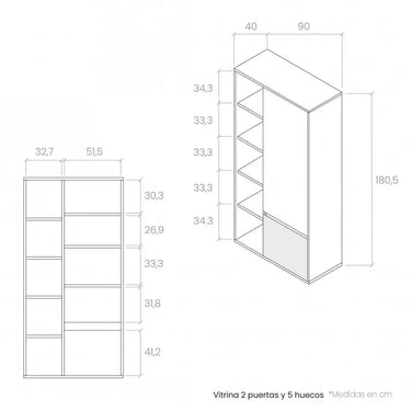 Estante 2P Lecce con dos puertas y cinco huecos de gran capacidad para almacenaje. De diseño actual, es una pieza funcional que se adapta a distintos espacios.