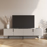 El mueble de televisión Eldia Perla es ideal para quienes buscan estilo y funcionalidad en un solo producto. Con unas dimensiones de 200 x 55 cm, se adapta perfectamente a espacios reducidos. Su acabado en color Perla y patas de metal le dan un aspecto moderno y resistente. Fabricado en melamina y metal, ofrece un amplio espacio de almacenamiento con cuatro puertas y un toque sofisticado para tu salón.