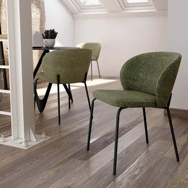 Consigue ese toque distinitivo!!!!!! La silla de salón tapizada mod. BERGEN encaja a la perfección en el hogar. Diseño y acabados tapizados de alta calidad en asiento y respaldo. Patas de metal negras.