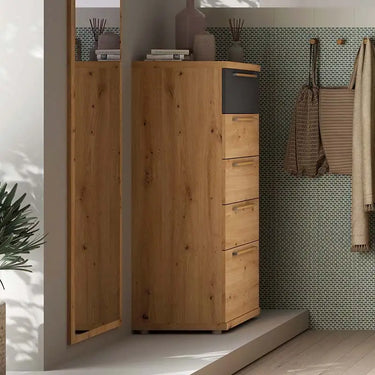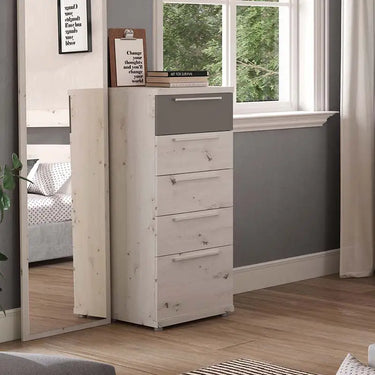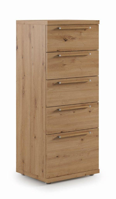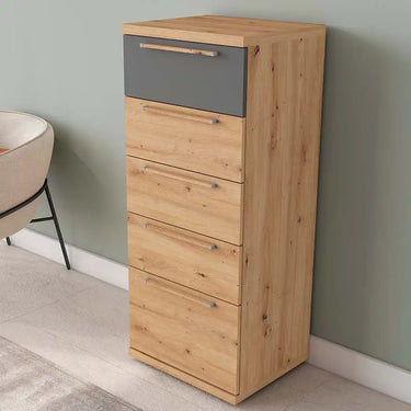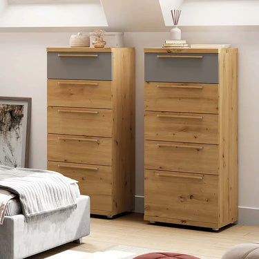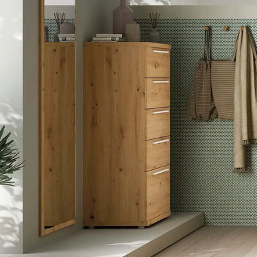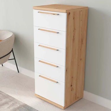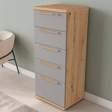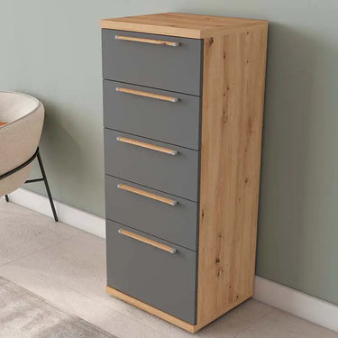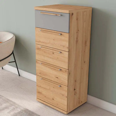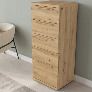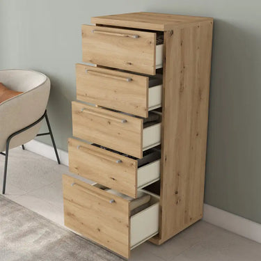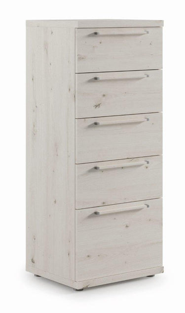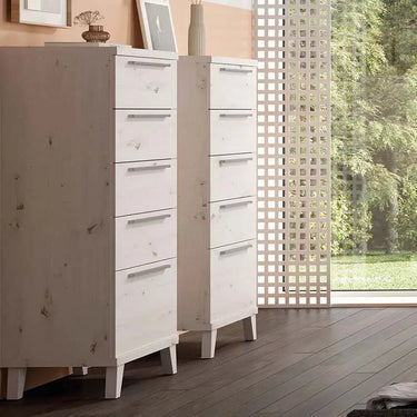 Aporta almacenamiento a tu dormitorio con el sinfonier de cinco cajones, una pieza de diseño sencillo y práctico. Personalízalo en acabados y combínalo con el resto de elementos de la colección Génova para crear un espacio único.