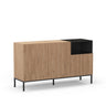 El aparador Cailin con tres puertas y un hueco destaca por su equilibrio entre elegancia y practicidad, con un diseño contemporáneo y gran capacidad de almacenamiento. Su acabado en negro y sepet aporta calidez y sofisticación, mientras que las patas metálicas añaden un toque moderno e industrial. Ideal para salas, comedores u oficinas, es perfecto para organizar todo tipo de objetos con estilo.