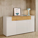 El aparador MILAN de 160 cm, con tres puertas y un cajón, es una pieza versátil y funcional que aporta estilo y personalidad a cualquier rincón del hogar.