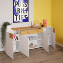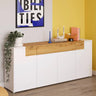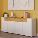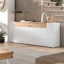 El aparador MILAN de 200 cm, con cuatro puertas y un cajón, destaca por su diseño equilibrado y su gran capacidad de almacenaje.