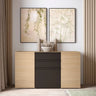 Con estructura en resistente tablero laminado natural, el aparador CATANIA 2 de 180 cm ofrece una solución funcional y estética para tu salón o comedor. Dispone de cinco amplios espacios de almacenaje y dos cajones centrales, ideales para mantener el orden con estilo.