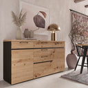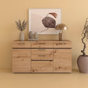 Su configuración de puertas y cajones ofrece una capacidad de almacenaje superior a la de otros modelos similares, combinando funcionalidad y diseño en un solo mueble.