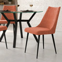 ¡Combina tapizados de color con metal negro para conseguir un comedor moderno y sofisticado!