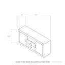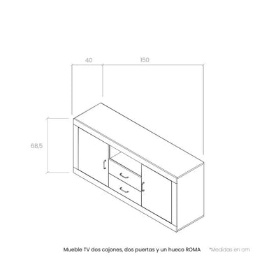 Añade un toque de lujo a tu espacio con nuestro mueble de TV (dos cajones, dos puertas y un hueco) y la vitrina de dos puertas con cajonera integrada.