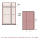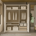 El armario de 3 puertas de la colección SIENA es la solución perfecta para quienes buscan orden, elegancia y versatilidad en un mismo mueble. Disponible en dos alturas y dos longitudes, se adapta fácilmente a cualquier espacio. Sus puertas batientes permiten un acceso cómodo y práctico, incorpora 2 estantes y 2 barras para colgar y puedes completarlo con accesorios como barra basculante, corbatero, zapatero, cajón relojero o pantalonero. Personaliza cada detalle para que encaje a la perfección con tu estilo.