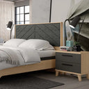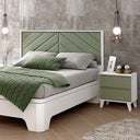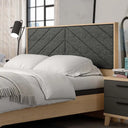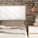 Aporta un extra de calidez a tu dormitorio con su diseño tapizado de inspiración geométrica. Fabricado con tableros resistentes y acabados melamínicos, es ideal para crear un espacio acogedor y con estilo.