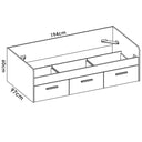 - Es necesario añadir un somier para cama de 190 (largo) x 90 cm (ancho). SOMIER NO INCLUIDO