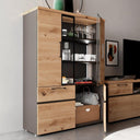 Incluye un mueble vitrina de 80cm y un mueble bajo para TV de 200 cm, prática composición
