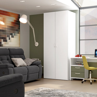 Se trata de un ropero de un cuerpo, con estante interior y barra colgador, y puedes añadir complementos para adaptarlo a tus necesidades.