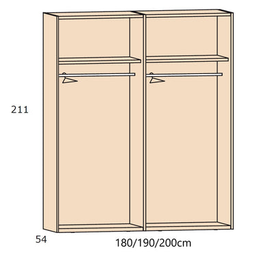 El armario L’AQUILA de 4 puertas combina estilo nórdico y funcionalidad en una pieza versátil, perfecta para cualquier dormitorio. Se compone de dos cuerpos, cada uno con estante y barra colgador.