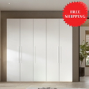 Descubre el lujo del almacenamiento con el armario de 5 puertas de la colección SIENA. Disponible en dos alturas y dos longitudes, se adapta perfectamente a tu espacio sin renunciar al diseño. Sus puertas batientes facilitan un acceso cómodo y práctico, incorpora 3 estantes y 3 barras para colgar y puedes completarlo con accesorios como barra basculante, corbatero, zapatero, cajón relojero o pantalonero para una organización interior a medida. Todo con acabados de alta calidad y personalización total.