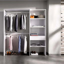 El armario vestidor de la colección PERUSA es una solución juvenil, versátil y modular para organizar tu espacio con total libertad. Su estructura se adapta a diferentes medidas y permite ajustar la barra simplemente cortándola a la longitud deseada. Incluye un cajón organizador ideal para prendas pequeñas o accesorios. Una opción funcional y moderna que se integra fácilmente en cualquier ambiente.