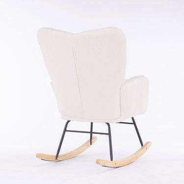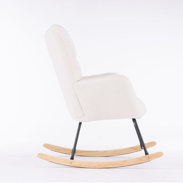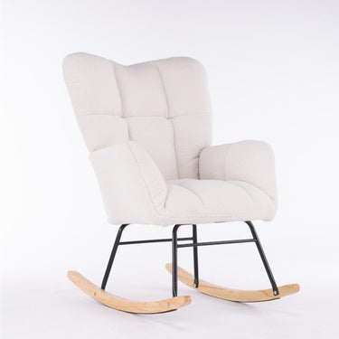 - Butaca mecedora tapizada en tela tipo Teddy con capitoné en respaldo y cojín asiento