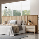 Una pieza que destaca por su elegancia y sobriedad, formada por una gran sección central de palillería y dos laterales combinados en acabado liso y listonado. Un diseño imponente que aporta carácter a tu dormitorio.