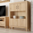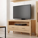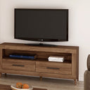 Crea una estancia única con el mueble de TV (dos cajones y un hueco abierto) y la vitrina de dos puertas, piezas versátiles que te ofrecen el almacenamiento que necesitas con la estética característica de la colección ASTI.