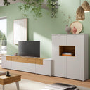 Formada por un mueble de TV y una vitrina de dos puertas, esta propuesta ofrece una fusión equilibrada de elegancia y funcionalidad, ideal para crear un espacio acogedor y con estilo.