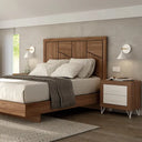 El cabecero, con su diseño cuidado, aporta calidez y sofisticación al dormitorio, destacando con sutil elegancia.