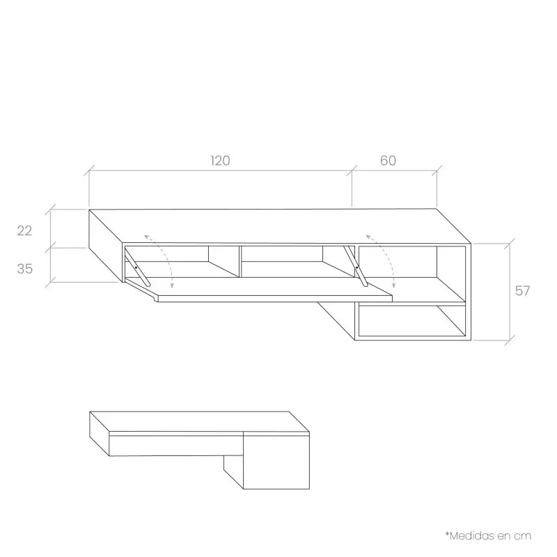 • Bajo TV de 2 puertas independientes con asistencia por amortiguadores hidraulicos