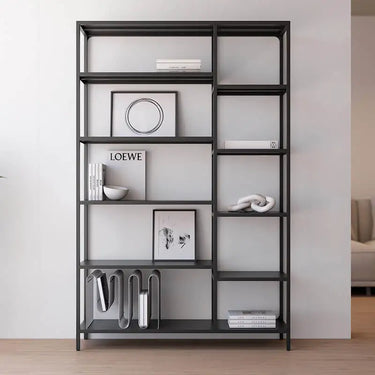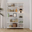 La estantería doble AINATIT combina elegancia y capacidad en un diseño moderno y equilibrado. Su estructura amplia permite exhibir libros, piezas decorativas u objetos personales de forma ordenada, convirtiendo cualquier estancia en un espacio sofisticado y funcional.