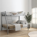 La litera DOU 90-135 es perfecta para familias con hijos o para invitados que necesitan espacio adicional. Con una cama individual de 90x190cm en la parte superior y una cama de matrimonio de 135x190cm en la parte inferior, esta litera te permite optimizar el espacio sin sacrificar el confort. Su estructura metálica, disponible en gris o blanco, incluye escalera, somiers y barandilla para mayor seguridad. ¡Aprovecha al máximo tu espacio con esta práctica litera!