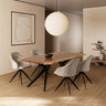 Esta mesa de comedor de estilo industrial mide 200×100×76 cm y cuenta con una tapa de madera de Acacia con un diseño irregular y nudos naturales. Sus patas de metal negro le aportan un toque moderno y permiten combinarla fácilmente con muebles de madera o de diseño. Ideal para recibir de 8 a 10 comensales, esta mesa es perfecta para quienes buscan equilibrio entre lo natural y lo actual.