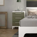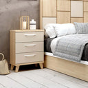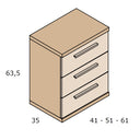 Mesita de noche LUCCA con tres cajones y tiradores vistos