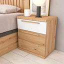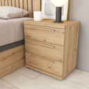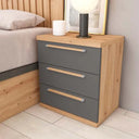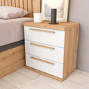 La mesita de noche Génova con tres cajones es perfecta para añadir diseño y funcionalidad a tu dormitorio. Personalízala en colores, tiradores y acabados, y crea la mesita que mejor se adapte a tu estilo.