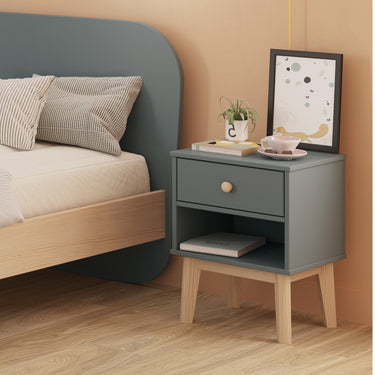 La mesita de noche ESTEBAN es una pieza funcional y versátil que encaja fácilmente en dormitorios de estilo moderno. Dispone de un cajón y un práctico hueco inferior, ideal para tener a mano lo esencial sin recargar el espacio. Su diseño sencillo permite combinarla con camas, nidos, cabeceros y otros muebles de la colección.