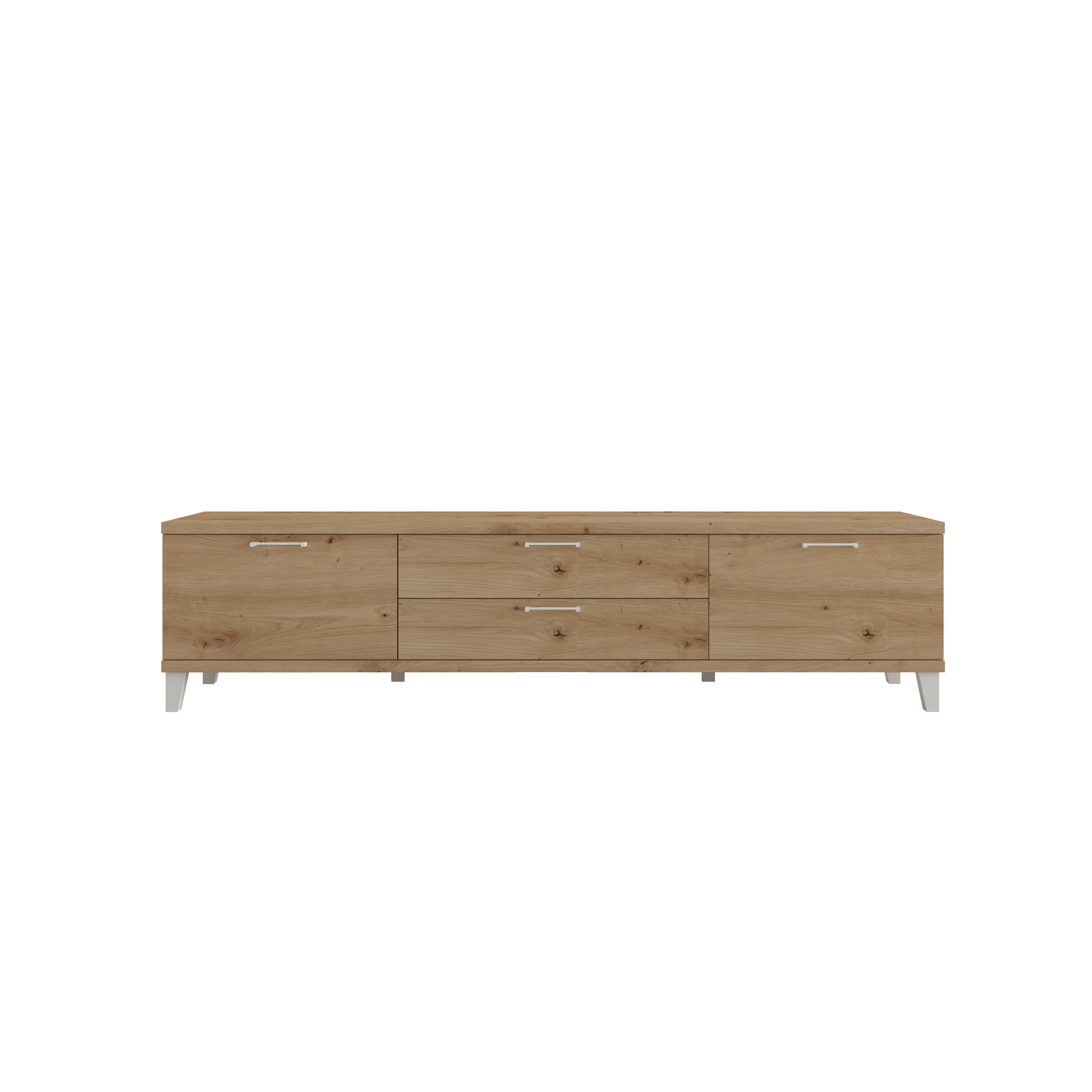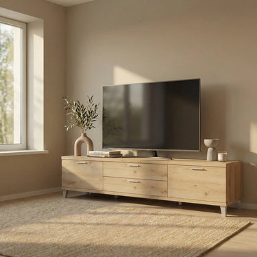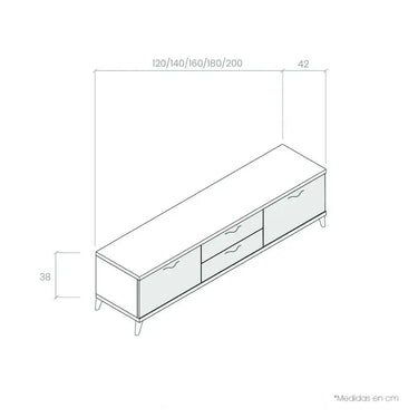 Su diseño, con dos cajones y dos puertas, ofrece una solución práctica para mantener tu salón organizado sin renunciar al estilo.