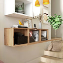 Recibidor compuesto por un módulo de puerta batiente rectangular, 2 cubos abiertos y un espejo redondo.