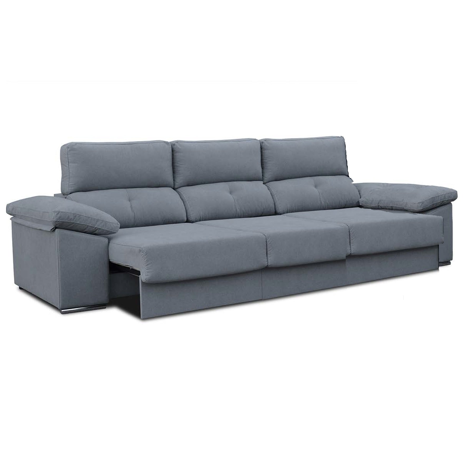 Disfruta de confort y versatilidad con el sofá 3 plazas de 3 asientos y 240cm, un sofá amplio y elegante diseñado para ofrecer comodidad superior gracias a su asiento con muelles ensacados, capas de espuma y fibra siliconada. Su sistema extensible y respaldos reclinables permiten adaptarlo a tus necesidades, mientras que los cojines desenfundables facilitan la limpieza y mantenimiento.