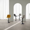 El taburete AHSA combina funcionalidad y diseño con un asiento y respaldo tapizados en tejido 100% poliéster, acolchados con espuma para mayor comodidad. Su estructura de madera contrachapada garantiza resistencia, mientras que la base metálica negra con acabado lacado mate aporta estabilidad y un estilo moderno. Además, es giratorio y elevable, adaptándose fácilmente a diferentes alturas y usos en cualquier espacio.